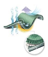 Polartec® Aqua Shell®. Sustituye al neopreno para deportes acuáticos. Expulsa el agua y mantiene el calor minimizando la pérdida de radiación corporal por evaporación, el picor, la irritación y todo el resto de las incomodidades que tienden a ser sinónimos del neopreno. Proporciona un mayor aislamiento y secado más rápido que los trajes de neopreno y Spandex de peso equivalente. Muy usado por los submarinistas profesionales y remeros de aguas bravas. |